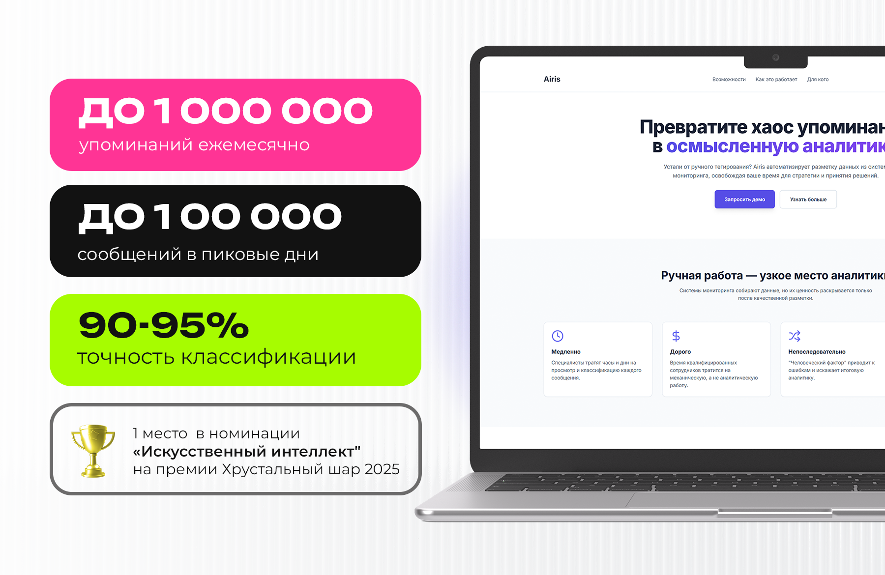 Airis — стартап-разработка на базе 5 крупных языковых моделей, созданная специально для обработки упоминаний и присвоения им качественных признаков.